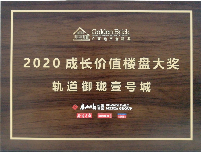 • 軌道御瓏壹號城獲得廣西地產金磚獎2020成長價值樓盤大獎