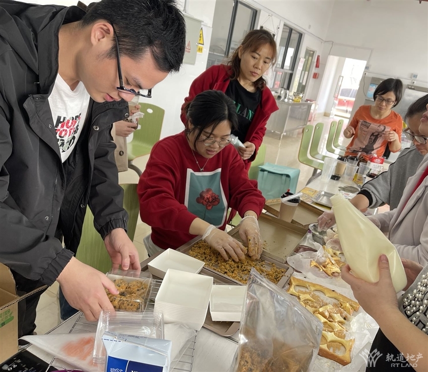活動現(xiàn)場,由愛好烘焙的同事指導大家制作蛋糕、蛋撻、肉松小貝、雪媚娘、珍珠奶茶等美食,有“斤斤計較”分配食材的、有“認認真真”研究烤制時間的、有“切切察察”切分水果的……一番忙碌之后,一個個美觀、美味的蛋糕、蛋撻等陸續(xù)呈現(xiàn)在大家的面前。整個活動現(xiàn)場彌漫著濃郁的香甜氣味,大家品嘗著自己的勞動成果,洋溢著陣陣的歡聲笑語,充滿著快樂和幸福的味道。
