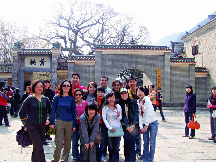 第三日清晨,整裝待發(fā)八點前往黃姚古鎮(zhèn)。賀州是粵東的一座新興城市,而黃姚,卻有著近千年的厚重。從古鎮(zhèn)入口前左邊的一條岔路走進去,首先觸目的便是一條清澈的小溪、一棵參天的古榕樹,我們開始細(xì)細(xì)觀賞這個小鎮(zhèn)。古榕的軀干伸向小溪,又從空中垂下縷縷氣根,與水中的倒影連為一體。溪邊水井里清可見底,偶有小魚游動。據(jù)說黃姚是按九宮八卦陣式布局,鎮(zhèn)上的石板街有8條,共99999塊青石板,最早鋪砌于清順治年間。年代久遠(yuǎn),不知有多少人走過,青石板已被磨得像鏡子般光滑,隱約泛著人影。橋下的姚江,如今看水依舊清碧,可是繁華不再,顯赫的牌匾也只能靜靜地訴說著昔日的輝煌。石板路的小村落很安靜,人們過著日常的生活,村婦們在井頭溪邊,淘菜洗衣,交流信息,菜渣、閑話都隨溪水流去,并不對外來的游客有格外的好奇。孩子們快樂地嬉戲著,在那些蜿蜒的巷子里不時冒出他們快樂的喧嘩。宗祠府第這樣的舊時輝煌不經(jīng)意地散布于鎮(zhèn)上的民居之中,亭閣前的聯(lián)匾,記錄著文人騷客對黃姚的鐘愛,只是年代遠(yuǎn)去,如今物是人非。陽光下的青石板路上有時候也會躺著狗或者貓,你從它們身上跨過去的時候,它們會懶懶地翻翻眼皮,然后繼續(xù)睡在陽光里。雞們顯得勤快些,會邁著方步走在你前面東看看西瞅瞅,如果你不急,它會一直走在你前面,時間對它們沒有任何意義。還有那些老房子,任何一座都可能藏著一個故事。結(jié)了蛛網(wǎng)的窗欞恐怕已有了幾百年的歷史,但是沒有人把這當(dāng)成了不得的事情,一切如常,平靜隨意。
